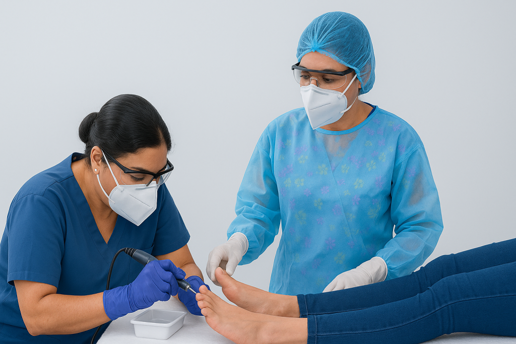 Prácticas profesionales enfocadas en la eliminación de callosidades, durezas y alteraciones dérmicas superficiales. Este módulo incluye técnicas especializadas para el cuidado integral del pie.